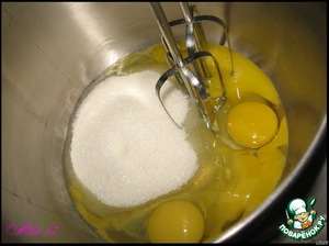 Взбиваем в пышную массу яйца с сахаром.