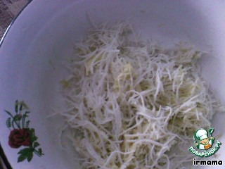 Большую черную редьку почистила, взяла сладкое яблоко (у меня яблоко - груша). Все натерла на комбайне.