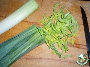 Лук-порей промыть и нарезать тонкими колечками.