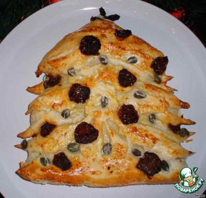 Вообщем на вкус семьи. На моей ёлке маленькие шарики - это каперсы, а большие-это вяленная помидора. Если её нет, то можно украсить половинками оливок.