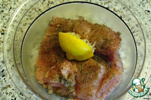 • 2. Замариновать рыбу в соли, приправах для рыбы, лимонном соке и оставить не менее чем на 2 часа (лучше на ночь для обогащения вкуса).
