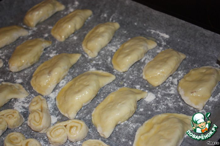 Выпекаем в духовке при 180 град. примерно 25 мин. Противень щедро присыпьте мукой, я присыпала даже бумагу для выпечки с силиконовым покрытием. ОЧЕНЬ вкусно! Приятного аппетита!