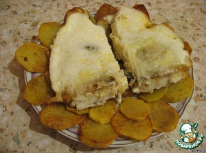 Выкладываем рыбку на картошечку и все, готово, можно есть!