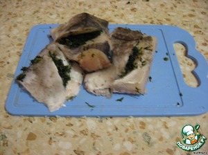 Надрезаем рыбу, получившиеся "кармашки" начиняем зеленью.