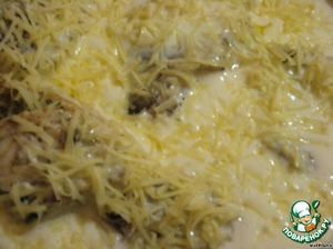 Заливаем яично-сырной смесью и посыпаем сверху оставшимся сыром. -