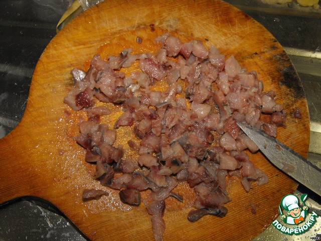 P.S. Начинка осталась - съели в виде салатика. На следующий день поехали на дачу: духовка там отсутствует - сделали салатик (селедочка, яблоко, лук красный, яйцо). Супер!