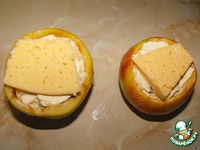 Сверху кладем по чайной ложечке плавленного сыра. |