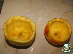Яблоки моем, вырезаем сердцевину так, чтобы получилась чашечка из яблока, обязательно, с донышком!!!