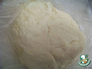 Высыпаем муку в миску, добавляем сметану, соль, сливочное масло и замешиваем тесто. Мешаем до тех пор, пока тесто ни перестает прилипать к стенкам. Можно, при необходимости, добавить немного муки, я добавляла 2 раза по 1 столовой ложке. Скатываем тесто в комок и ставим холодильник часа на 3.