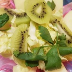 Киви почистить, нарезать тонкими пластинками