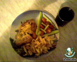 Жарим картошечку. И бежим в магазин за Кока-колой! Отрываем ножку, укладываем на тарелку рядом с картошечкой, поливаем соусом из лимонов с помидорами, посыпаем натертым сырком!!