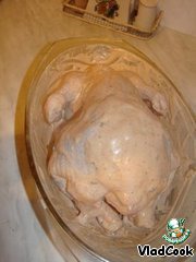 Смазываем курицу снаружи и внутри соусом.