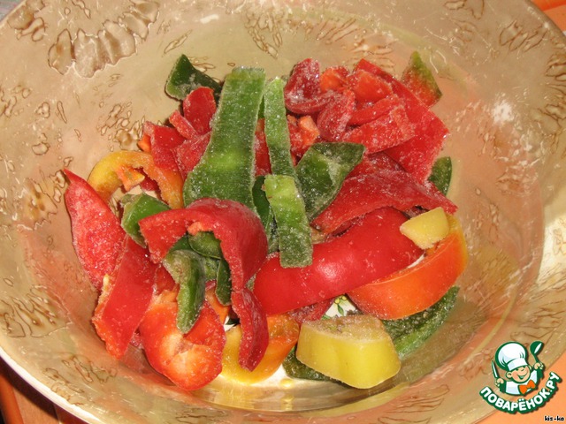 Для начала необходимо подготовить все необходимые ингредиенты. Примерно 4 кусочка белого хлеба замочить в молоке. Мелко порезать сладкий перец. Я брала замороженный на зиму, просто отеплила и порезала помельче.