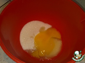 В емкость высыпаем сахар и яйцо, взбиваем.
