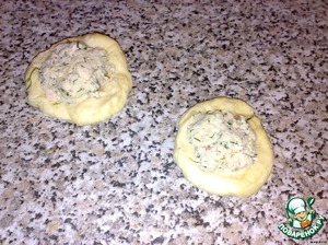 "Дебют"- т. к. первый мой рецептик. Закончилась начинка, а тесто осталось, да и курочки кусочек некому доесть. Вот и пришла идейка!