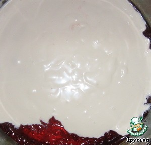Желе развести водой. Когда начнёт загустевать, добавить сметану и взбить миксером.