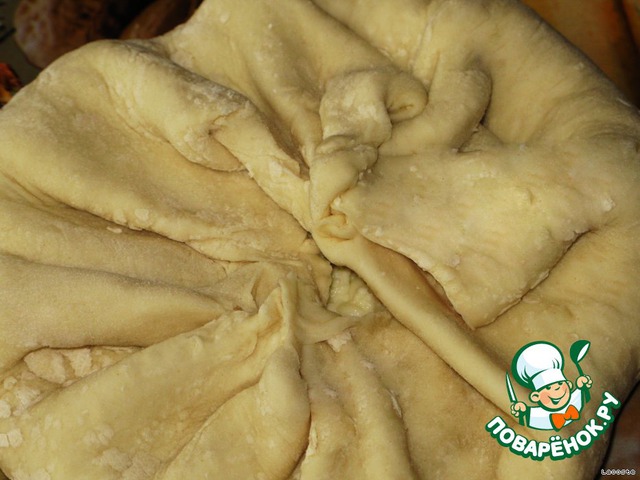 P.S. раскатывать нужно очень осторожно, у меня по неопытности в некоторых местах тесто порвалось и начинка вылезла наружу: ( -