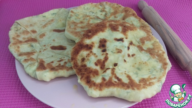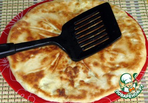На сильно разогретую сковороду положить лепешку и обжаривать на среднем огне по 5-6 минут с каждой стороны. Готовый "Хачапури" смазать сливочным маслом. Приятного аппетита!