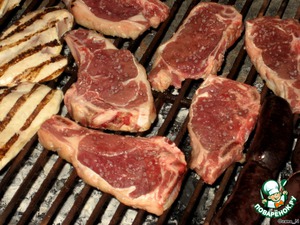 Разложить угли равномерно по дну гриля или барбекюшницы. Посолить мясо крупной солью, не боясь пересолить, так как мясо впитает нужное количество соли, а от излишка избавится. Разложить мясо на решетке.