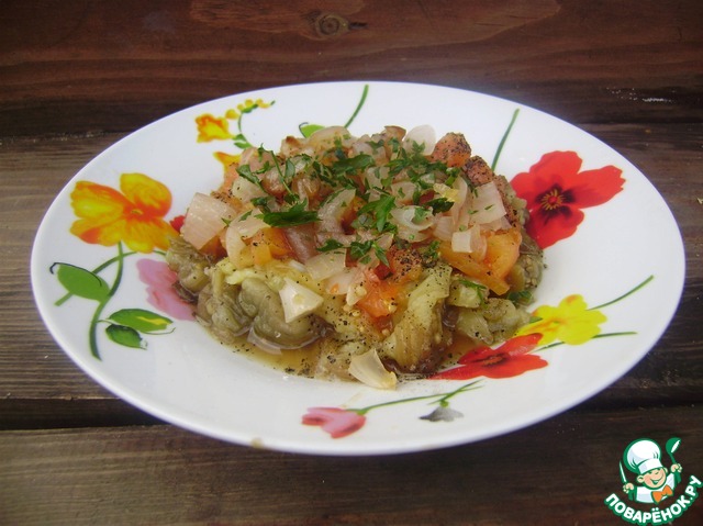 Самое замечательное, когда есть еще возможность запечь овощи (баклажан, перцы и помидорчики) для аджапсандали на углях, на решетке или на шампурах до корочки. Затем горячие запеченные овощи выложить в таз или миску с холодной соленой водой. Шкурка с овощей очищается очень легко и остается только мякоть с ароматом дымка, а ее уже и измельчить! Объеденье!
