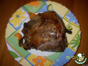 Затем вынуть мясо из маринада, сбрызнуть растительным маслом и запекать, я делала в гриле при темп. 180 град. 40 минут.