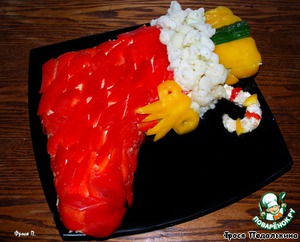 - Перец сладкий (красный 1 шт, желтый 1/2 шт - для украшения) — 1,5 шт