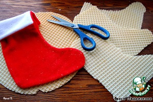 От хихонского туррона у меня остались вафельные коржи, грех было их не пристроить! И прототип сапожка оказался под рукой!