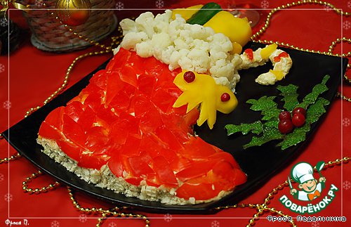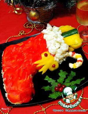 Рецепт «Закусочный торт "Сапожок с подарками"»: