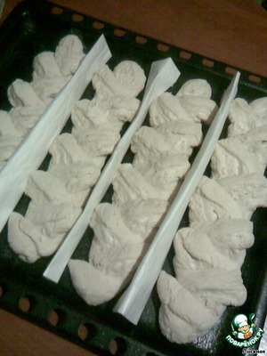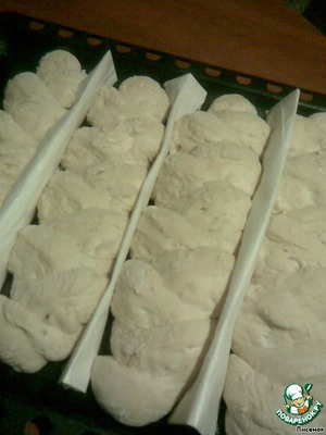 Также поступаем с оставшимися тремя "шариками". Между багетами прокладываем пергаментную бумагу, сложенную несколько раз и промазанную маслом. Накрываем багеты полотенцем и даем постоять еще минут 50-60.