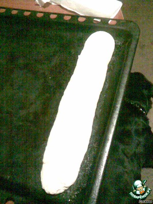Теперь приступаем к формированию багетов. Каждый шарик скатываем "батоном". Выкладываем на противень, смазанный маслом (буквально немного).