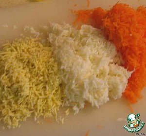 На мелкой терке трем морковь и яйца (отдельно белок и желток)