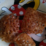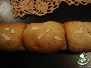 Я сделала также "Черепицу": для этого горячее печенье разложила на скалку или бутылку, оставила до полного охлаждения. Можно украсить миндалем.