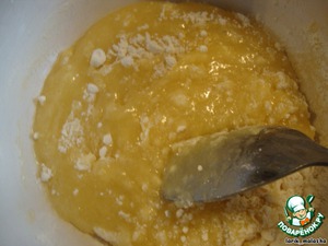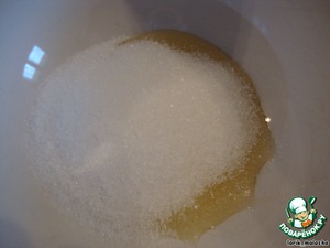 Растопленное сливочное масло добавляем к смеси сахар-мед. Хорошенько размешиваем!