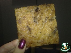 Пока еще горячее - разрезаем на квадратики - или полосочки - кто что хочет. Остывает и становится более твердым.