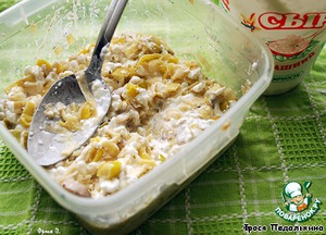 Аккуратно ввести ананасы и сметану (да-да, "Молочный продукт" ;-) ), соль по вкусу.