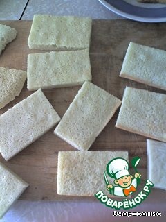 Освобождаем бисквит от бумаги, пропитыаем сиропом.