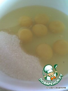 Яйца с сахаром взбить в пену.