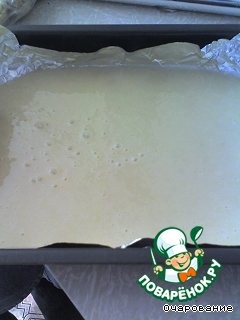 Выливаем тесто на противень, выстланный бумагой для выпечки, у меня была фольга.