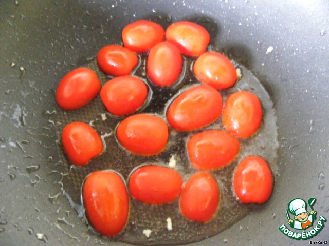Черри томаты обжарить на сильном огне 2 мин. Выложить.