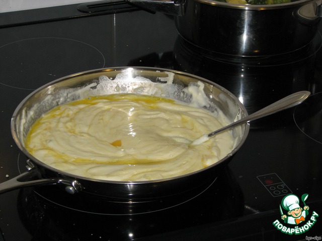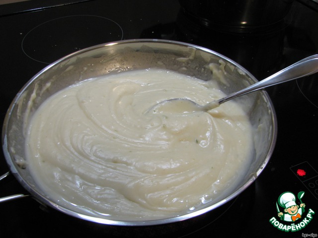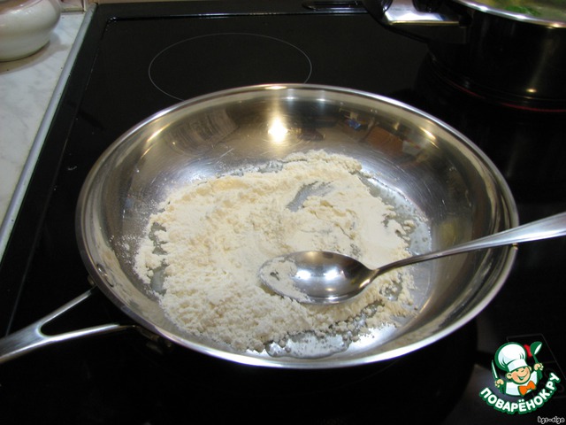 Постепенно доливать туда капустный отвар и сливки. Следить чтобы не было комочков. Помешивая кипятить 5 минут.