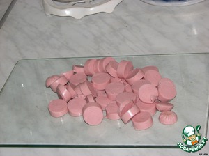 Нарезать сосиски кружочками. Перец вымыть, удалить плодоножку и семена, нарезать полосками (у меня перца не оказалось, поэтому без него).