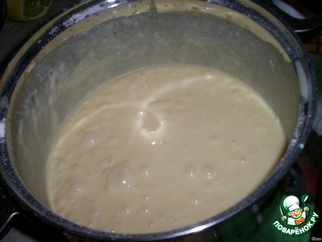 Растопить 200 г. маслa, взбить с сахаром и солью.