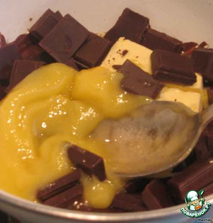 смешиваем мед, масло и кусочки шоколада вжаропрочной миске, ставим ее "на водяную баню" и готовим, помешивая, пока масло и шоколад не растворится