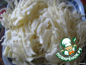 Капусту нарезаем ножом полосками или соломкой с помощью специальной терки для капусты и отправляем туда же в кастрюлю.
