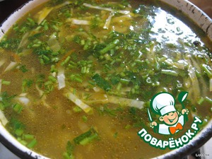 Морковку с луком обжариваем на растительном масле и кладем в бульон