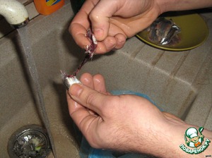 Начинаем чистить кильку. отрываем голову вытягивая одновременно внутренности