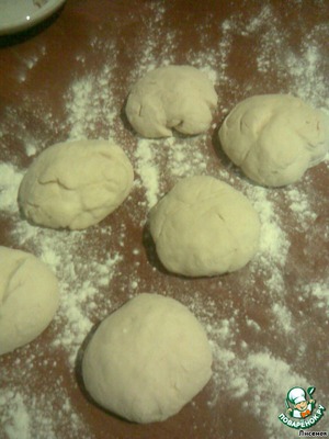 Подошедшее тесто обмять и разделить на 6 шариков.