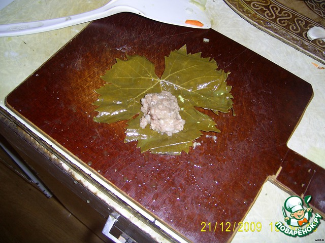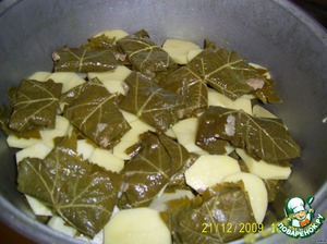 Разводим в воде немного соли, и заливаем долму так, чтобы вода чуть покрывала ее
