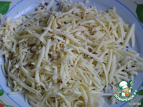 Сыр натереть на терке и смешать с солью и жареным кунжутом.