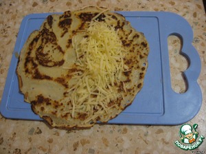 Блин фаршируем сыром, сворачиваем трубочкой.
